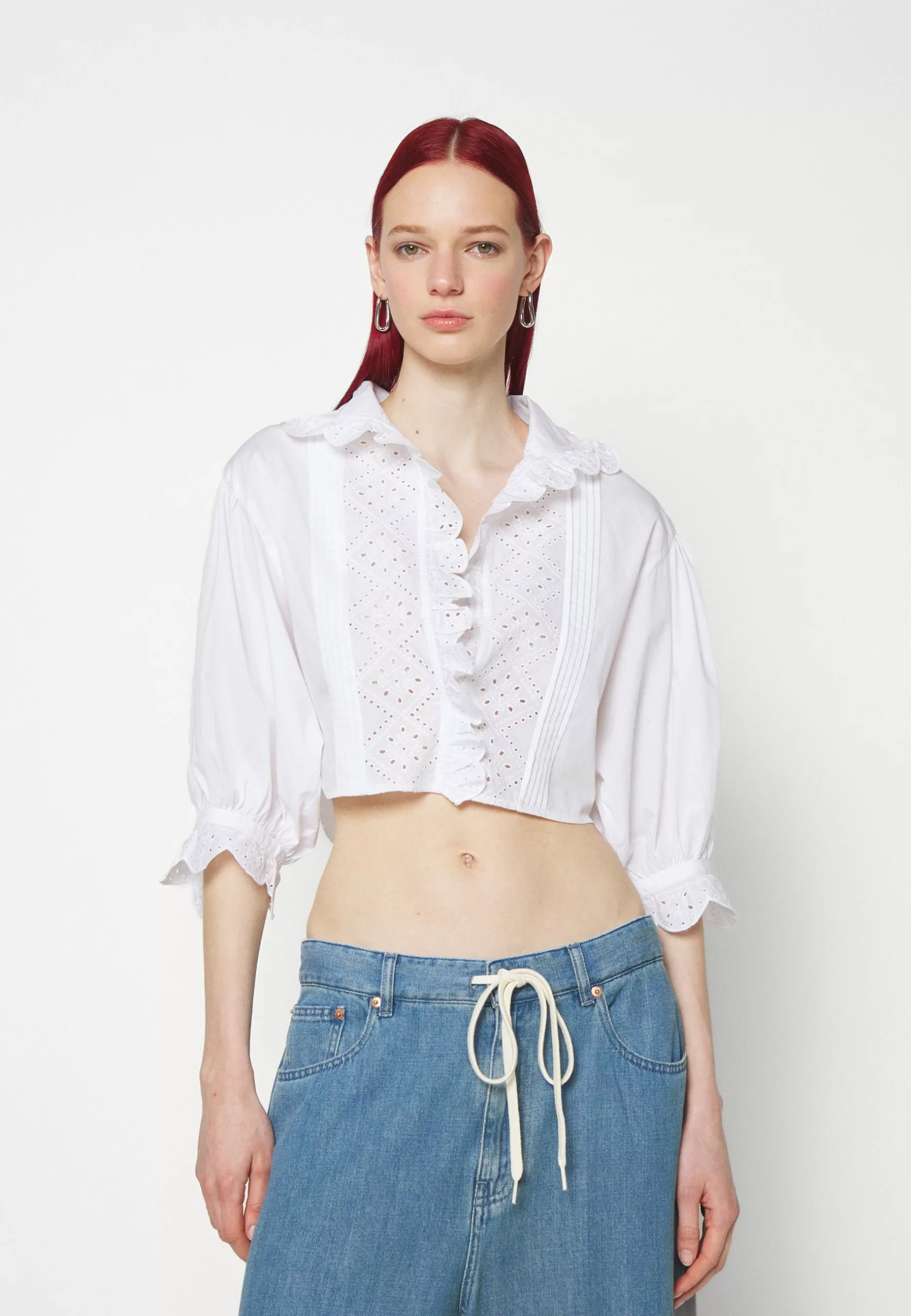 Filippa K Cropped Embroidery Blouse – Bluse – White