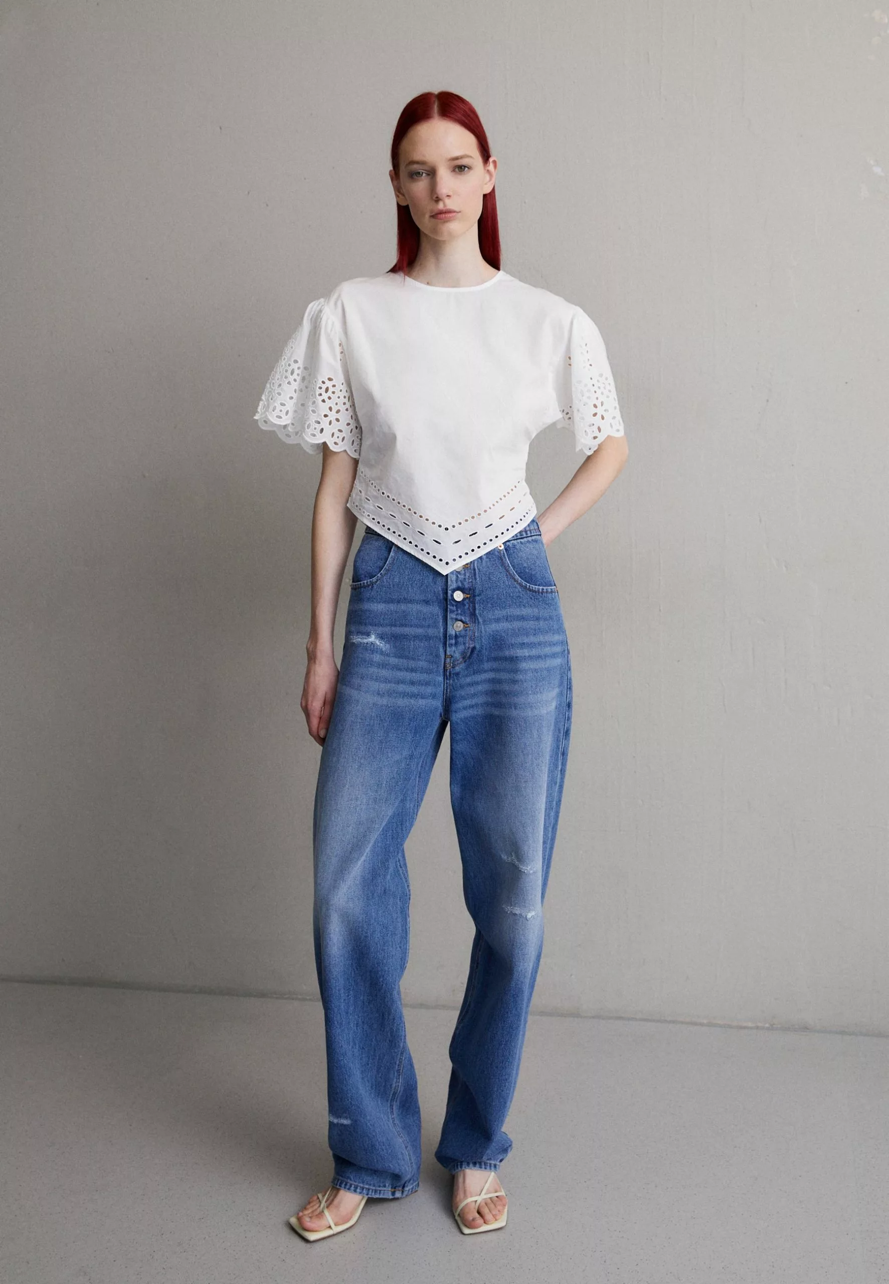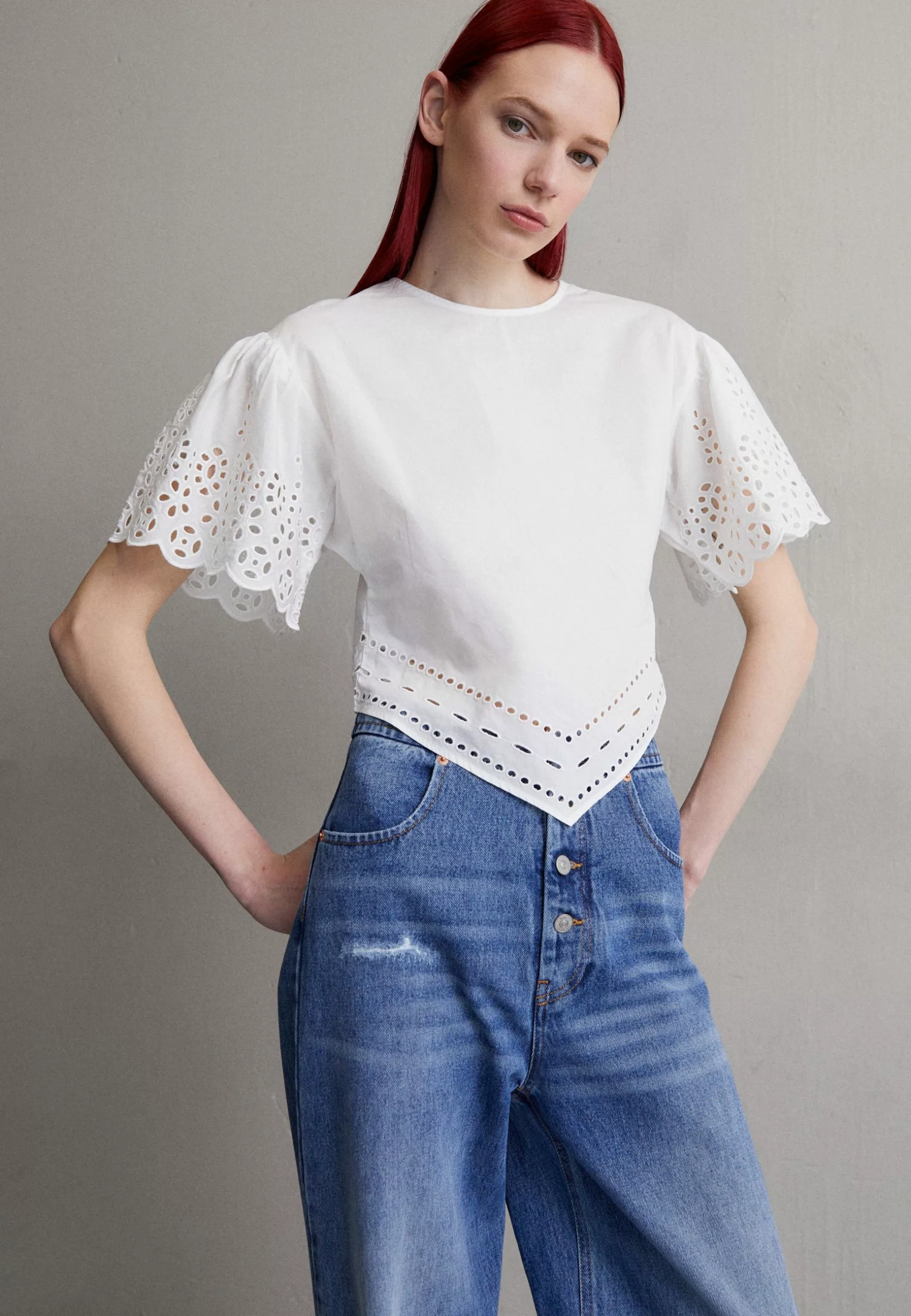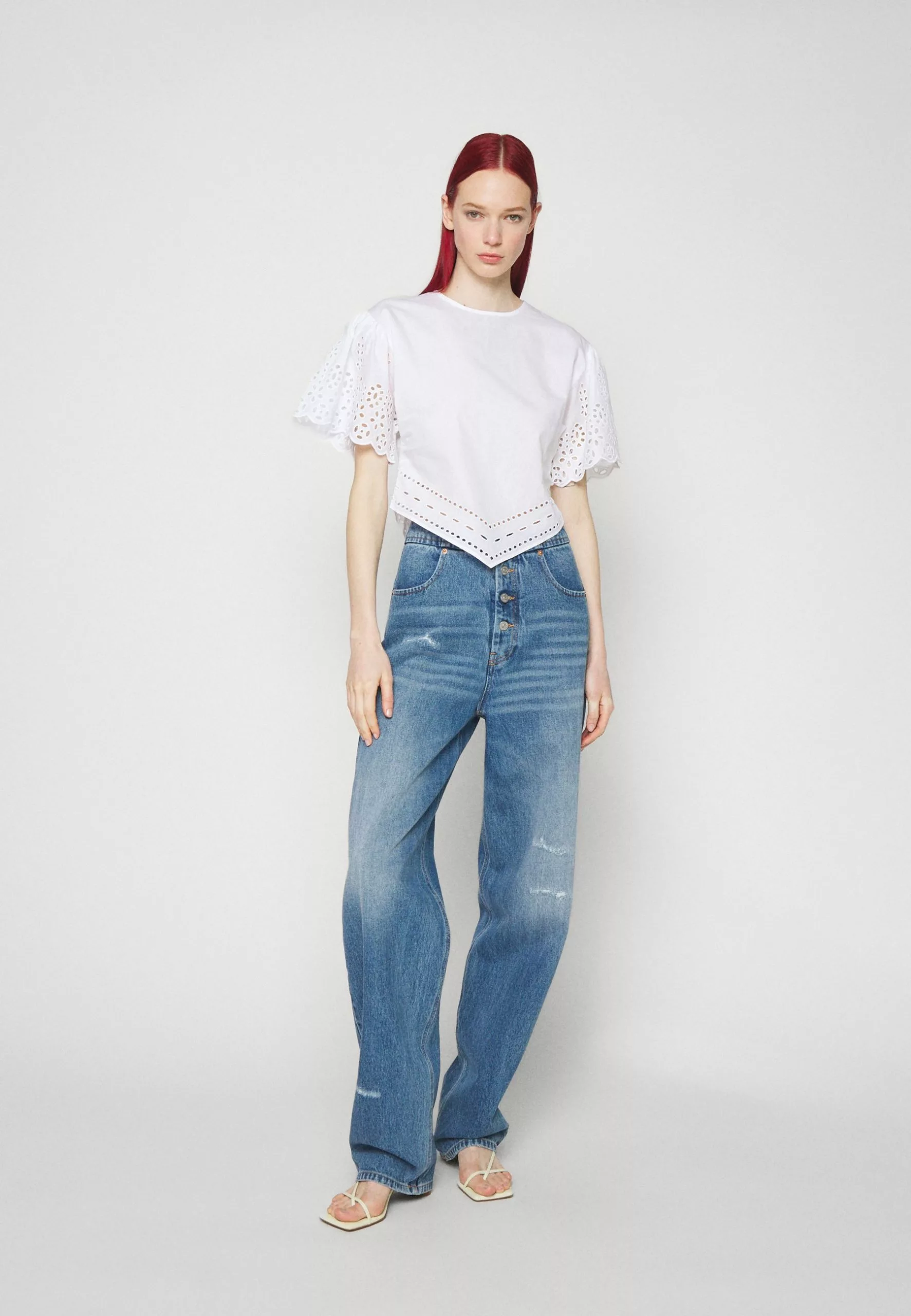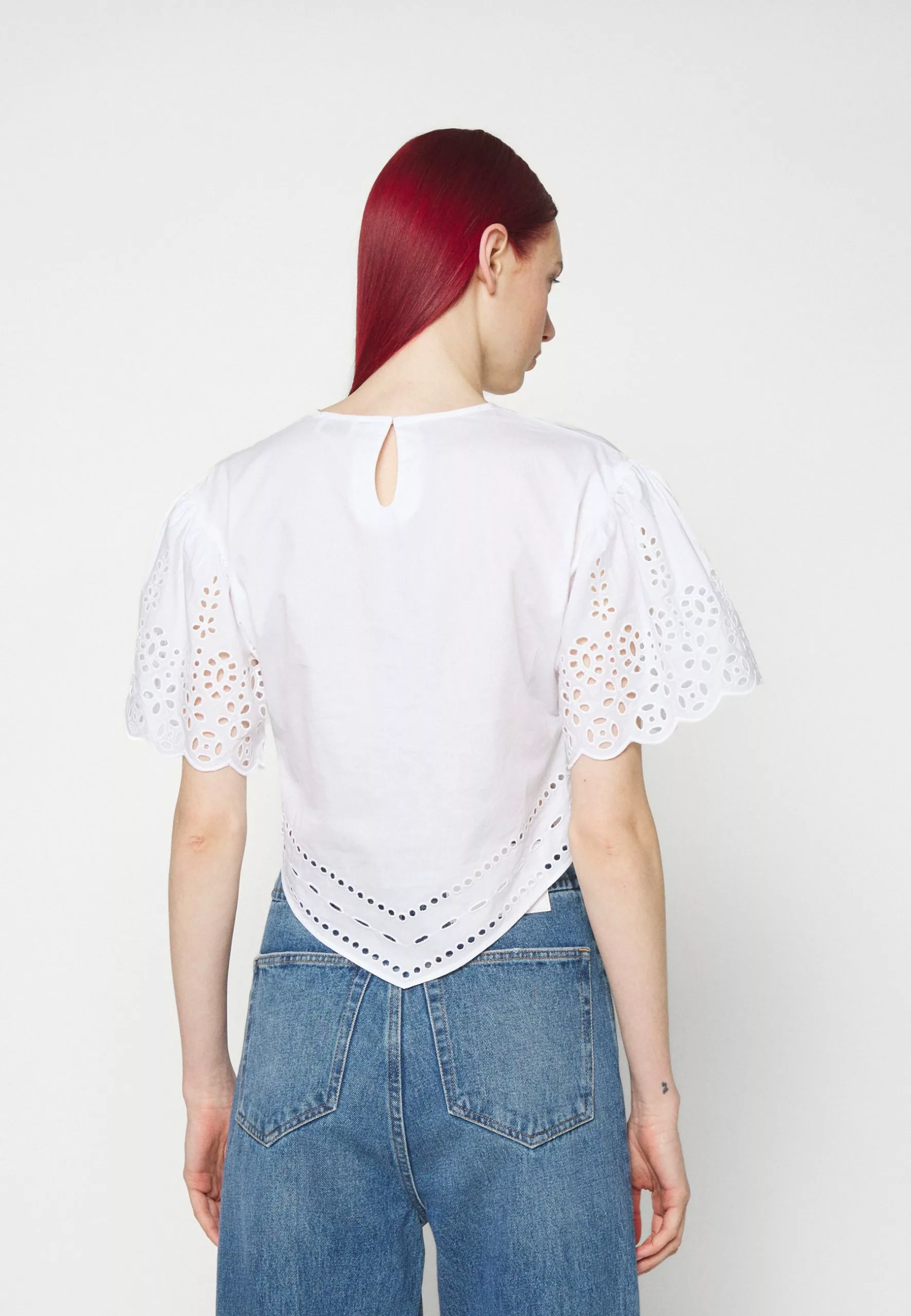 Filippa K Short Sleeve Embroidery – Bluse – White
